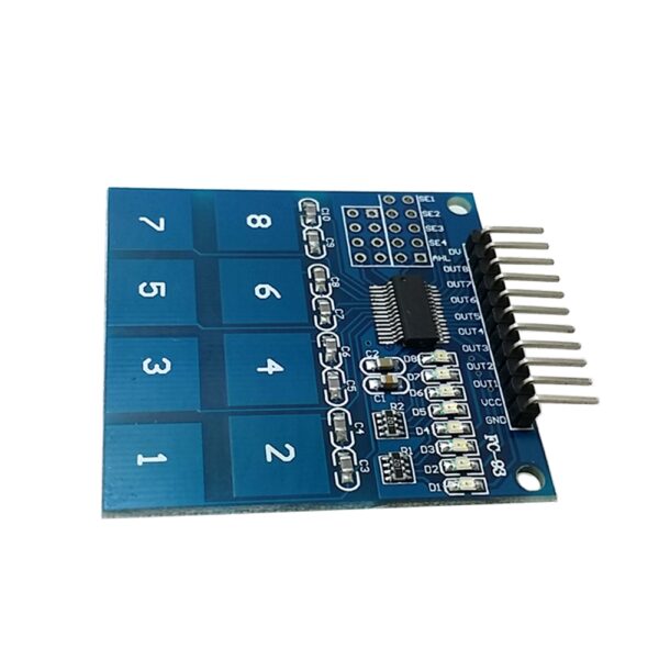 TTP226 capacitive touch sensor module is perfect for adding 8 capacitive touch inputs to your new project. this module is compatible with any microcontroller and Arduino board in existence