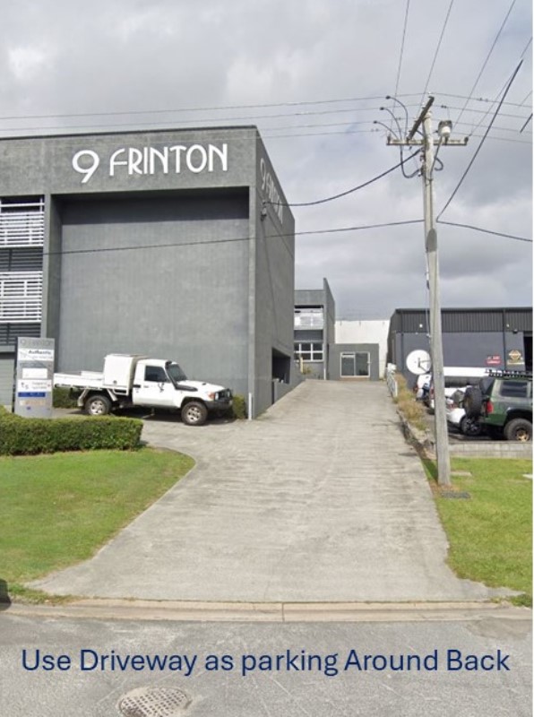 Once around Back, you can Park in front of our Roller Door Next to the office door