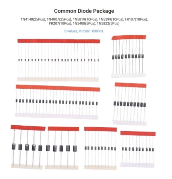 1N4148 25PCS 1N4007 25PCS 1N5819 10PCS 1N5399 10PCS FR107 10PCS FR207 10PCS 1N5408 5 PCS 1N5822