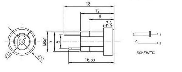 - 2 Terminals;Size : 18 x 10.3mm