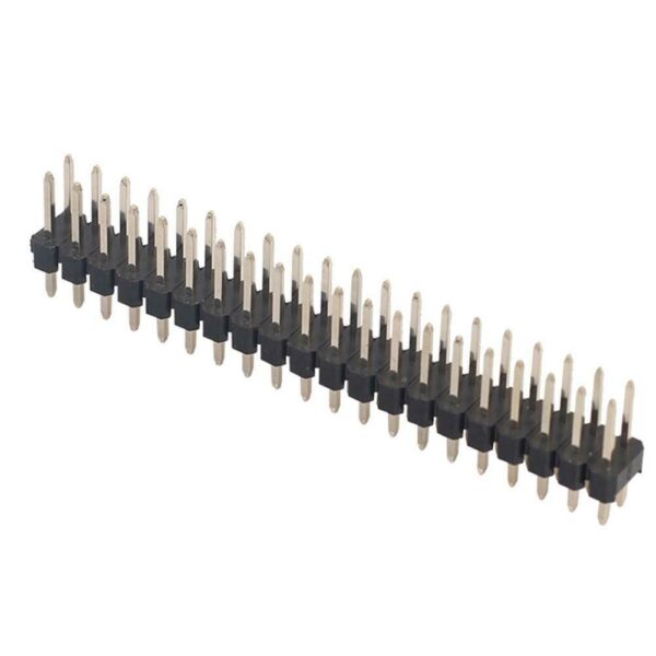2.54mm 2 x 20-pin Male Dual row header. These headers have 2 rows of 20 pins that are spaced just right for the Raspberry Pi GPIO pins, and with a little bit of soldering, you can install them on your Pi. It’s compatible with Pi Zero and Zero W models; however, the Zero models come without a header installed for the most part