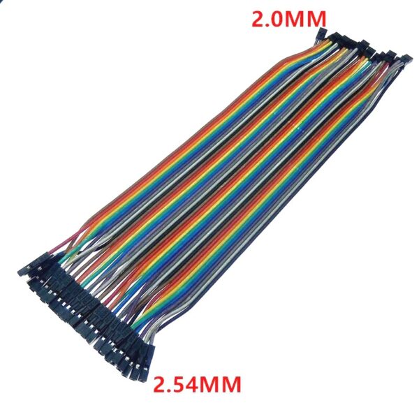 20cm 2.54 to 2 mm 40-way Dupont Jumper Wires Cables. These are two single 2.54 Pitch to Two-way 2mm Headers. They are great if you’re working with 2.54 and 2.0mm Pitch on the same Board,