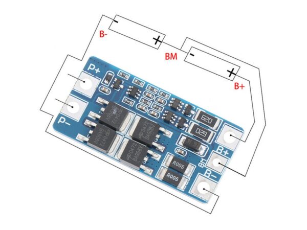 2S 10A BMS Li-ion 7.4 – 8.4V is Suitable for lithium batteries with a nominal voltage of 3.7V (including 18650, and 26650, without limitation on the dimensions).