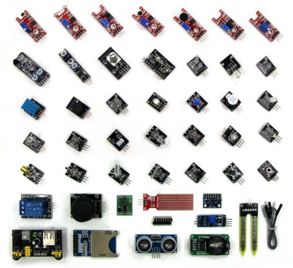45 In 1 Sensor Module Starter Kit This is a perfect kit developed especially for those beginners who are interested in Arduino, Raspberry Pi and can be used for as an Education Kit.