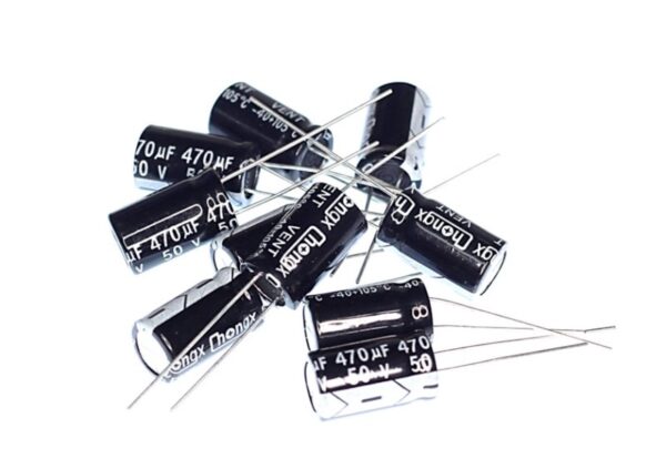 470uF 50V 20% 10×17 mm Radial Electrolytic Capacitors. These compact Aluminium Electrolytic Capacitors are typically used for circuit filtering, Decoupling, and timing applications.