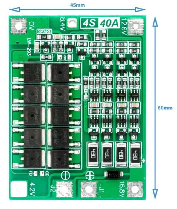 Enhanced is designed to protect 4-series lithium-ion battery packs from overcharging, over-discharging, and short circuits, Supporting a maximum continuous discharge current of 40A and a continuous charge current of 20A.