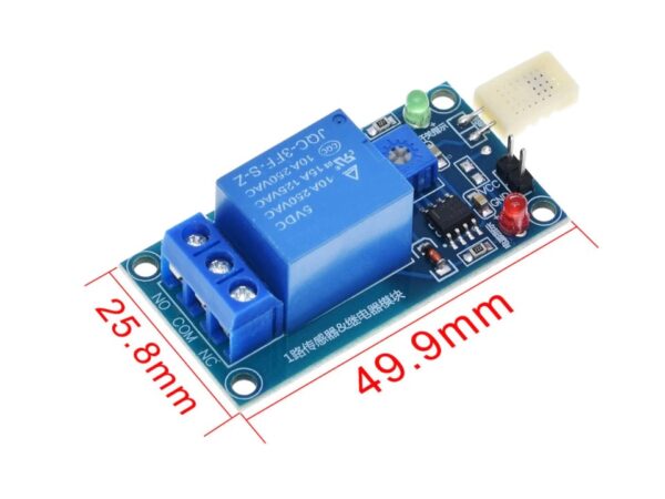 5V 1 Channel Humidity Sensor Relay Module is an electronic switch that turns a device on and off depending on the humidity of the surrounding atmosphere.