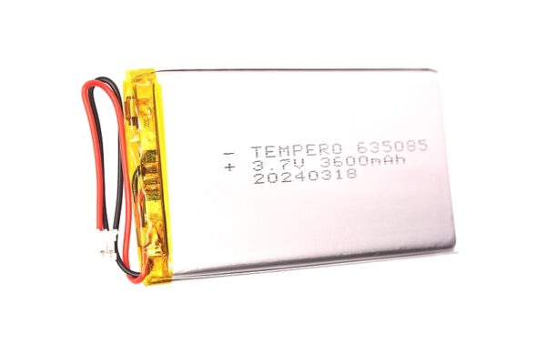 Lithium-ion polymer (also known as ‘lipo’) batteries are thin, light, and powerful. When ultimately charged, they output from 4.2V to 3.7V. This battery has a capacity of 3600mAh for a total of about 13.32Wh. If you need a larger (or smaller!) battery, we have an extensive range of Lithium-ion polymer batteries.
