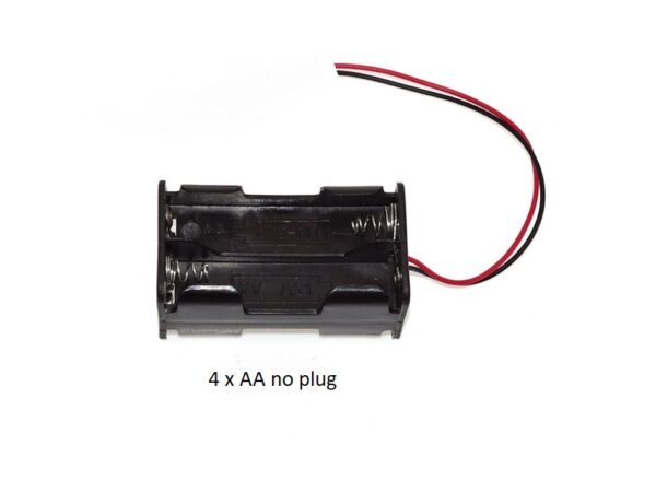 AA battery holder with or without a DC plug fly lead suited for general projects as well as for Arduino projects. The DC plug is a 2.1mm centre positive