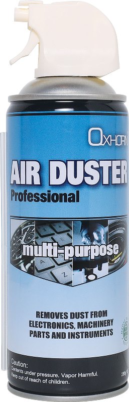 Air Duster Spray: A 284g can of pure, high-pressure gas for removing dust and airborne contaminants from delicate equipment. Flammable type.
