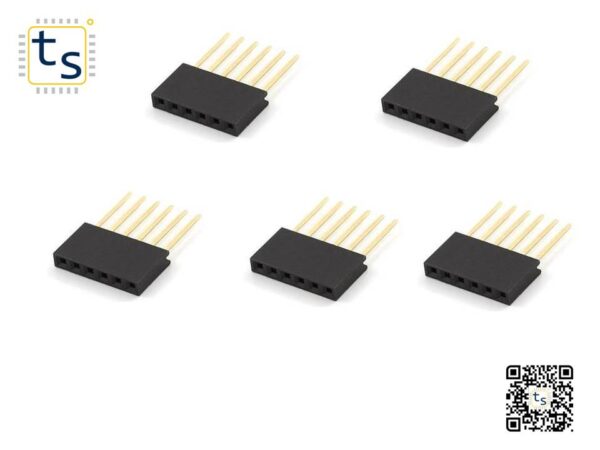 Arduino Stackable Header 6Pin 5 Pack female stackable header with 0.1″ pin spacing and extra long legs