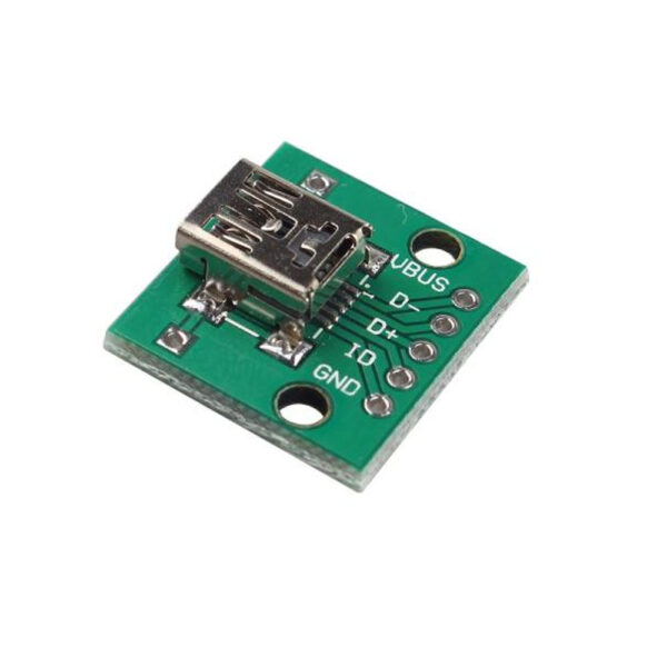 A USB Mini B breakout board provides easy access to the connector’s pins, simplifying the integration, prototyping, and testing of USB Mini B devices in electronic projects.