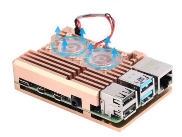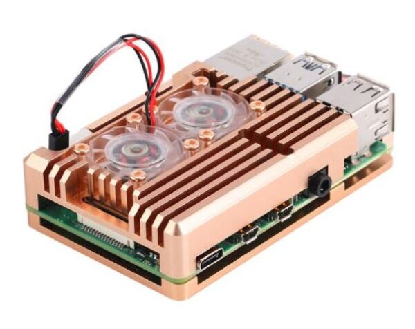 This is a Bronze Aluminum Dual Fans Cooling Case Raspberry Pi 4 Computer Model B. It is a great raspberry pi 4 passive cooling case to help raspberry pi 4 board cool down. Also a Raspberry Pi 4 Heatsink Case (Raspberry Pi 4 Case) for good heat dissipation.