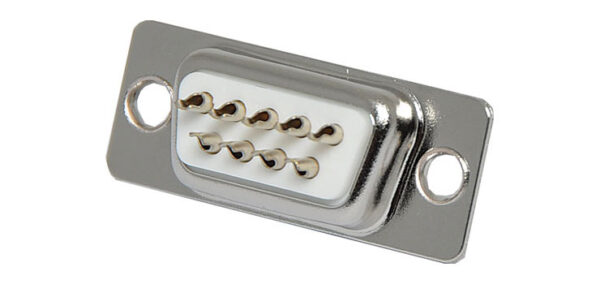 The term “DB9” refers to a common connector type, one of the D-Subminiature or D-Sub types of connectors. DB9 has the smallest “footprint” of the D-Subminiature connectors and houses 9 pins (for the male connector) or 9 holes (for the female connector).