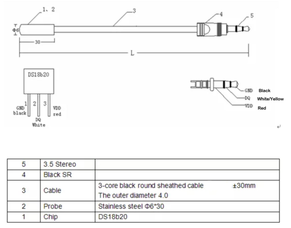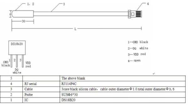 | Model | DS18B20 1Mt 2.5mm Plug Waterproof Probe, DS18B20 1Mt 3.5mm Plug Waterproof Probe, DS18B20 1Mt Waterproof Probe, DS18B20 1Mt Waterproof Probe With Adaptor, DS18B20 5Mt 2.5mm Plug Waterproof Probe, DS18B20 5Mt 3.5mm Plug Waterproof Probe, DS18B20 5Mt Waterproof Probe, DS18B20 5Mt Waterproof Probe With Adaptor, DS18B20 RJ11 Jack Sonoff Waterproof Probe, DS18B20 10Mt Waterproof Probe, DS18B20 8Mt Waterproof Probe, DS18B20 Interface Adapter |