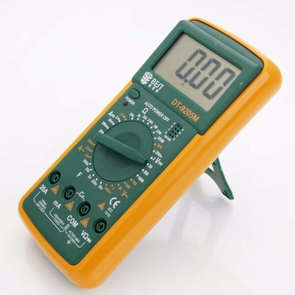 A DT9205M Digital Multimeter displays the quantity measured as a number, which eliminates parallax errors.