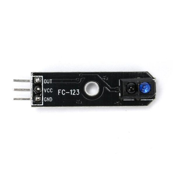 FC-123 TCRT5000 reflective infrared sensor with a potentiometer for calibration is a reflection optocoupler that can detect objects nearby or lines in “Line Follower” robots; it also works well for detecting the edges of a board or table for small circular robots.