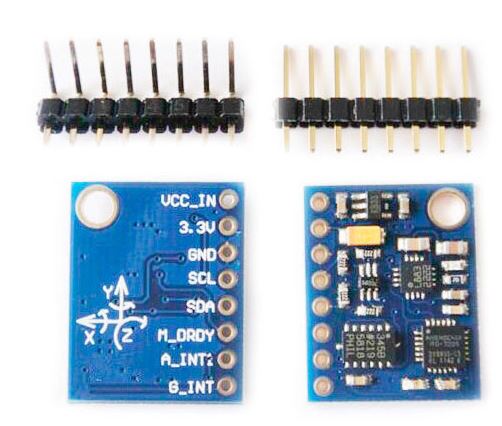 - Nine axis module (three-axis gyroscope + triaxial acceleration+ triaxial magnetic field)