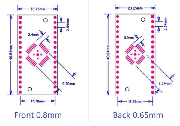HTQFP QFN32 to DIP32 0.8/0.65mm double-sided with exposed pad PCB prototype boards. All the distances between output holes are equal to an excellent assortment to meet your design demands, such as electronic experiments and DIY projects… QFP32 QFP32 PQFP LQFP Adapter Plate
