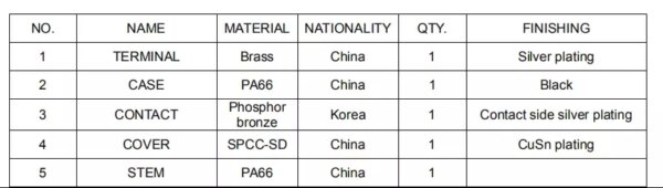 - Voltage: 250V AC for 1 min
