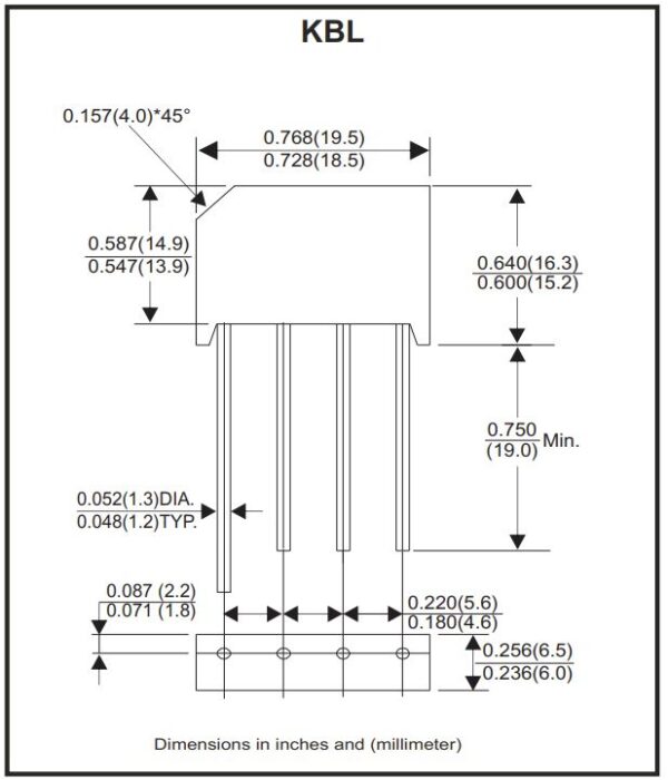 Specifications: KBL410 4 Amp Bridge Rectifier