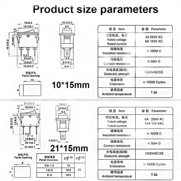 Package includes: KCD11 Rocker Switch AC 250V 3A 2 Pin