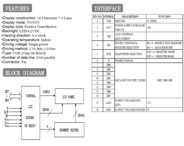 Package Included: 1 x LCD1604 16 X 4 Character Blue 5V