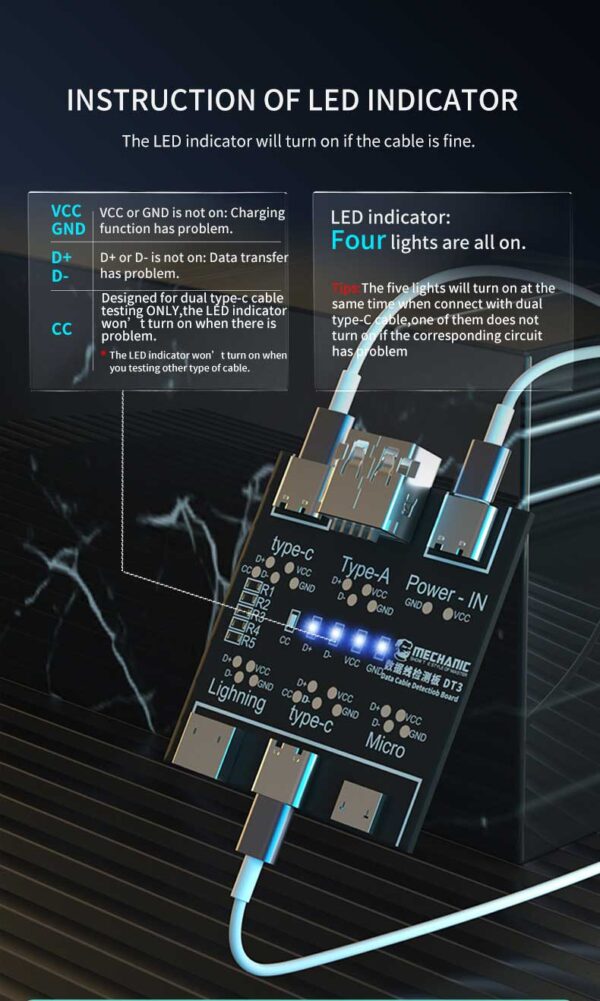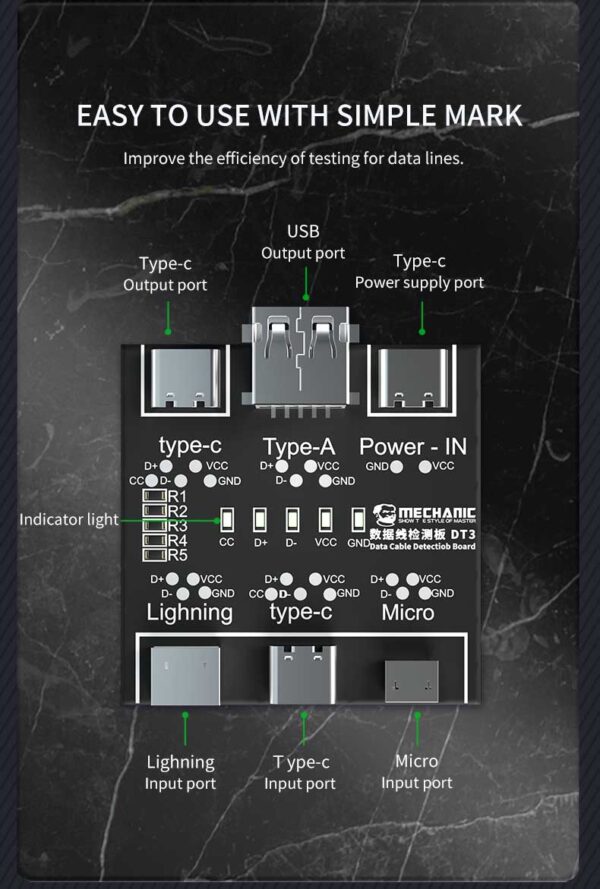 Mechanic DT3 USB Data Cable On-Off Detection Test Board for Lightning Micro Type-C Port Cable Data Cable Transfer Testing.