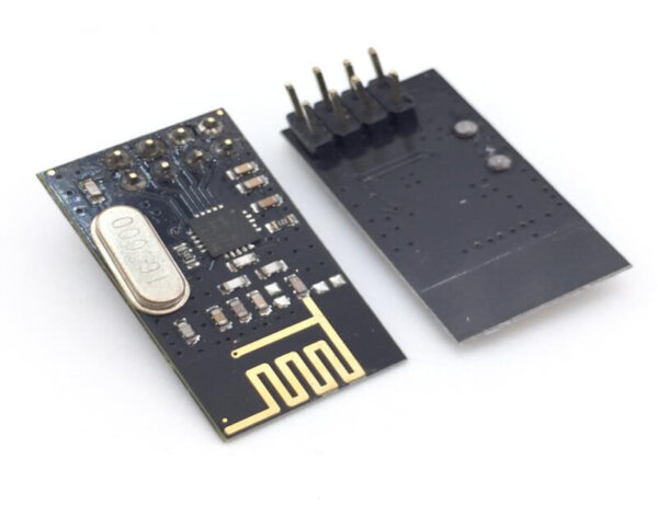 nRF24L01 is a single-chip radio transceiver for the worldwide 2.4 – 2.5 GHz ISM band. The transceiver consists of a fully integrated frequency synthesizer, a power amplifier, a crystal oscillator, a demodulator, modulator and an Enhanced ShockBurst™ protocol engine.