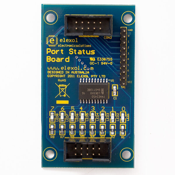 The board consists of 8 buffered LED indicators that visually indicate the port’s current state.