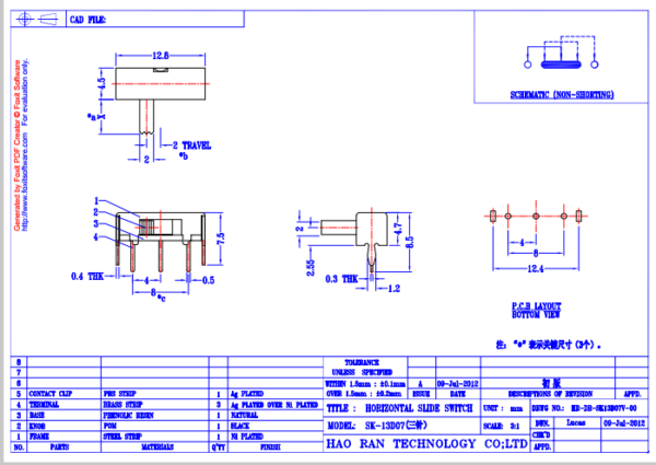 SK-13D07 PCB Mounted Miniature Horizontal Slide Switch