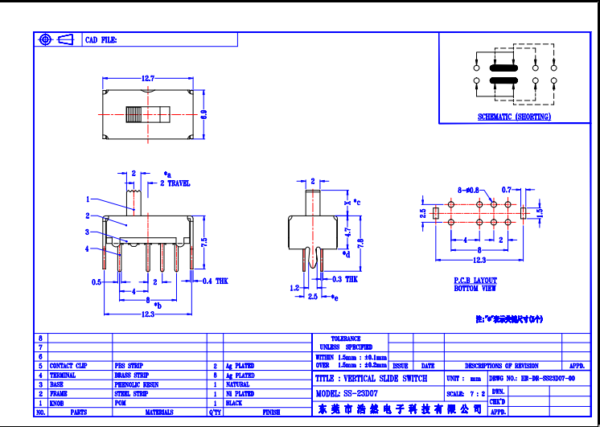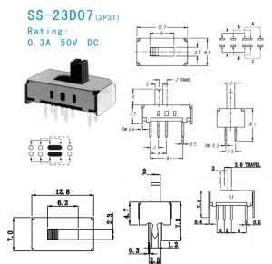 SS-23D07 PCB Mounted Miniature Slide Switch Widely used to control the operation of many small power electronic projects, including volume and other controls for audio-video and dimmer controls for lights. Also, a significant component for DIY. Etc.