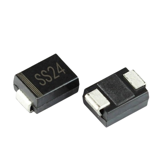 SS24 Schottky Power Diode is a surface-mount High-Power Schottky Rectifier with a Low voltage drop of 0.5V and a high forward current of 2A. This diode is highly efficient and has a high surge current capability of 100A. It is commonly used in freewheeling, DC/DC converters, and reverse polarity protection applications.