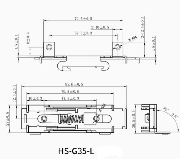 Steel LeftAngle DIN Rail Mounting Clips are hardware components designed to securely attach devices, panels, or components to 35mm DIN rails while allowing for a perpendicular (right-angle) orientation.
