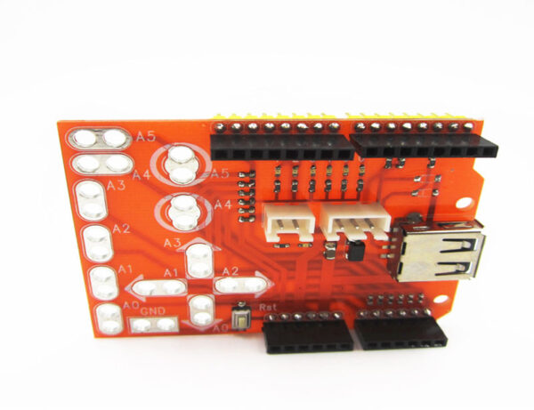 shield uses touch input, namely, a double-contact switch, leading out touch port and ground connected to two touch electrodes. It uses an ARDUINO microcontroller to simulate a keyboard, and lead out several keys, replacing the switch with a touch key.