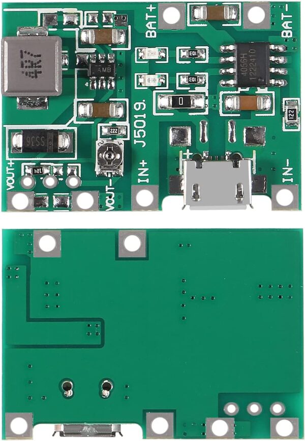 TP4056 3.7V 4.2V 9V 5V 2A Adjustable DC-DC Step-Up Boost Module is a small single-cell lithium battery charging module with a 1 Amp step-up (boost) converter for powering a large range of applications.