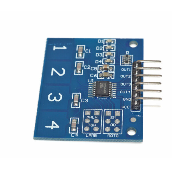 TTP224 capacitive touch sensor module is perfect for adding 4 capacitive touch inputs to your new project. this module is compatible with any microcontroller and Arduino board in existence