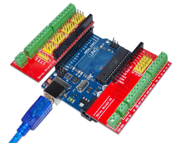 Arduino 3-Pin male headers for easy sensor Servo connection. Compatible with Arduino UNO R3 Arduino UNO. Both sides of the shield are broken out to the side of the Arduino