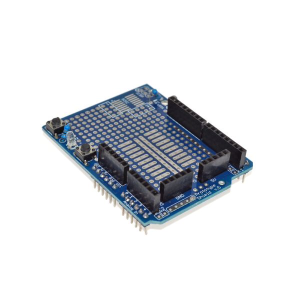 This UNO R3 ProtoShield With SYB-170 Mini Breadboard Base is designed for building a prototype circuit. Components can be soldered directly onto the board and the board can be connected to the circuit through the above mini breadboard. The breadboard and circuit board are connected to each other by Double-sided adhesive. It should be noted that the breadboard and circuit board are disconnected when sold. ProtoShield prototype expansion board carries two LED and two-button circuits, all of which are ready for use. All pins and power supply have been extracted, making the board the best match.