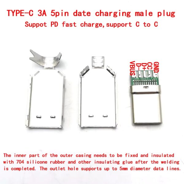 USB 3.1 Type C 3A 5Pin Plug (Male) Cable Kit