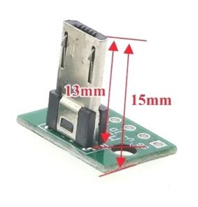Micro USB connector, providing USB power input to microcontrollers (e.g., Arduino, ESP32), commonly used for charging and data transfer in mobile devices, embedded systems, and DIY electronics.