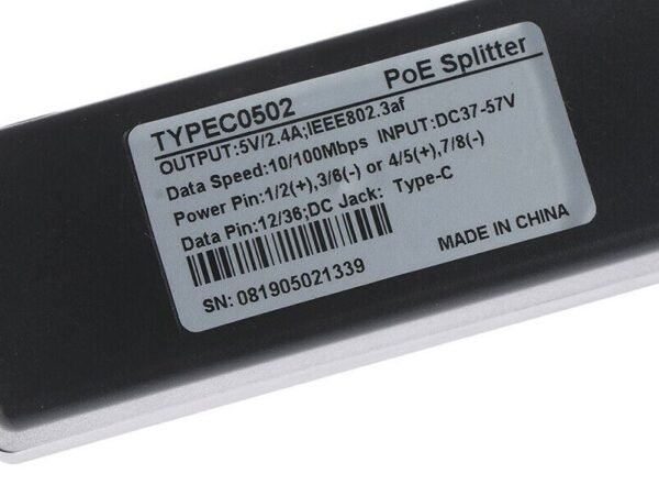 The Type C 5V POE Splitter can split the POE signal into 5V USB-C power supply and gigabit Ethernet in RJ45 so that non-POE devices can be powered over Ethernet.