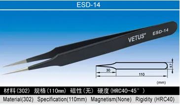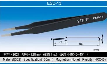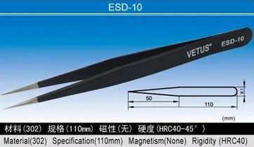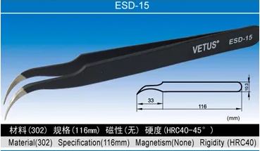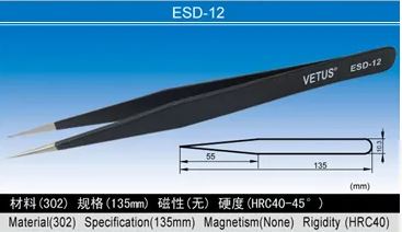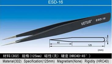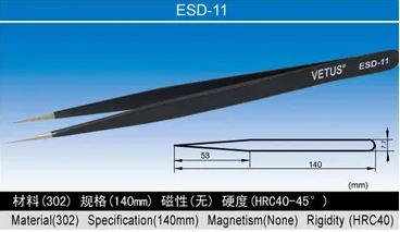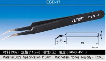 VETUS ESD Antistatic Tweezers High-quality stainless steel precision ESD tweezers are antistatic and anti-magnetic With an anti-corrosion paint coating.