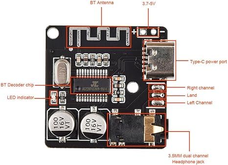 VHM-314 Type C Bluetooth 5.0 Audio Receiver Board MP3. This compact and cost-effective Bluetooth 5.0 audio receiver module supports an automatic reconnect function. A micro USB or a 3.7V lithium battery can power it. With this module, you can easily convert your old speakers into wireless Bluetooth speakers.