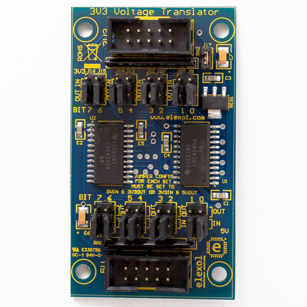 The Voltage Translator Board is an accessory board that performs level conversion of a 5V interface (I/O24 or microcontroller) to a 3V3 or lower interface. You can connect this board to a single port on the existing I/O 24 Range.